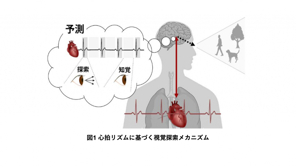修士課程では、成人を対象に、拍動リズムと運動・知覚の指標として眼球運動を用い、それぞれの発生タイミングの関連について検討しました。その結果、心臓が拍動した直後の収縮期には、外界を探索するための眼球運動であるサッケード(saccade)が生じやすく、続く拡張期には、探索によって得られた感覚情報を知覚処理するための眼球運動である固視(fixation)が生じやすいことが明らかになりました。このような「収縮期―探索運動、拡張期―知覚処理」という拍動リズムと眼球運動の発生タイミングの対応関係(以下、カップリング現象)は、脳内における自己身体内部情報に基づいた能動的な調節メカニズムの存在を反映していると考えられます。