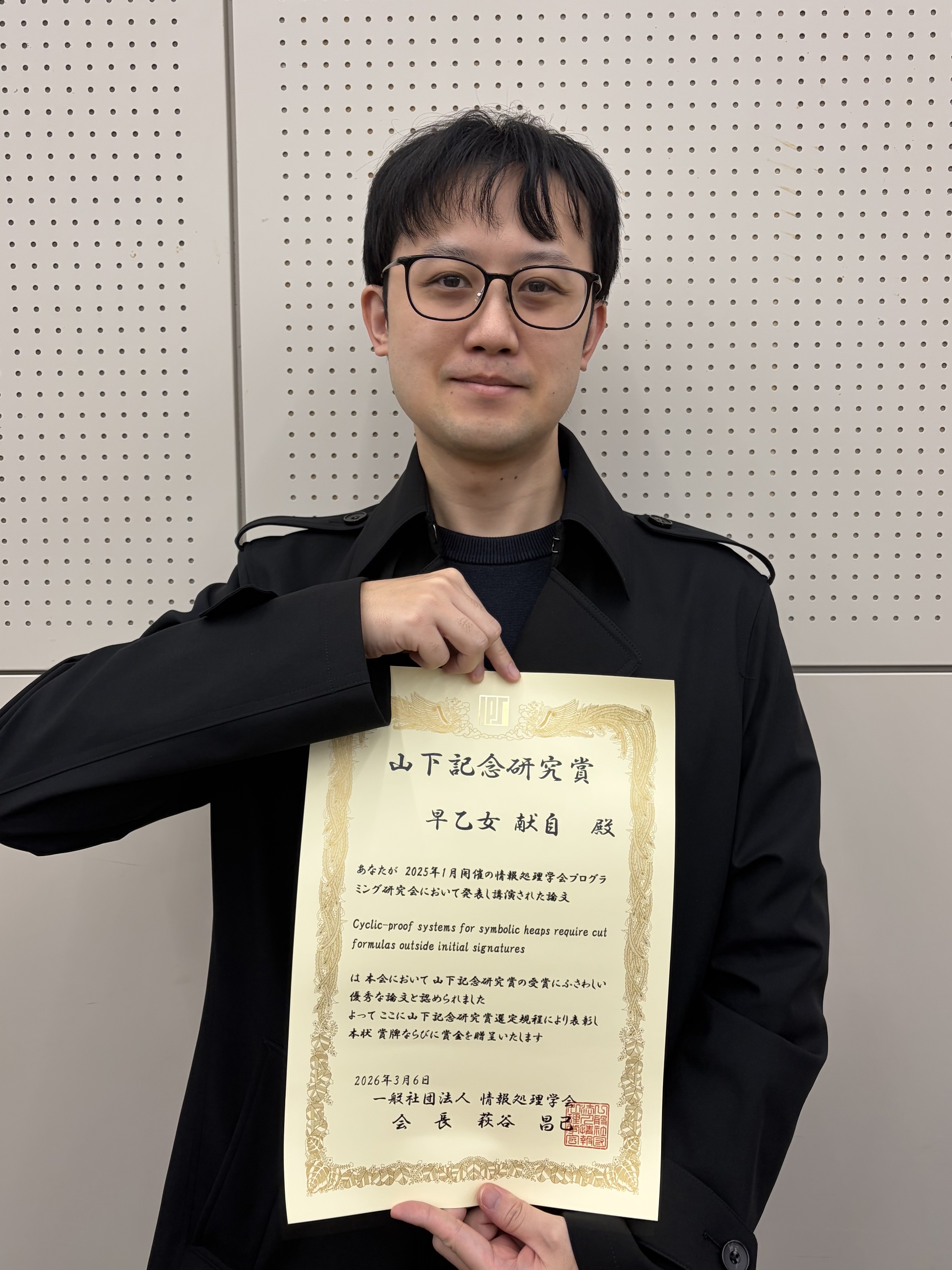 情報処理学会より山下記念研究賞を受賞しました。(情報システム学専攻 早乙女献自 D3)